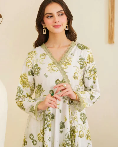 đElegent Print Abaya Alpona Olivesđ
