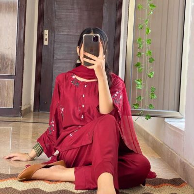 đ¸ Graceful Embroidered Suit â Soft & Elegant
