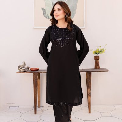 ব্ল্যাক ব্যাড়ি এমব্রয়ডারি করা সুতি কাপড়ের টু-পিস