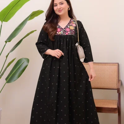 đ¸Sara Embroidery Work And Afsan Print Suitđ
