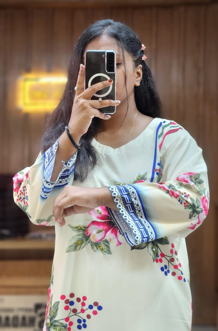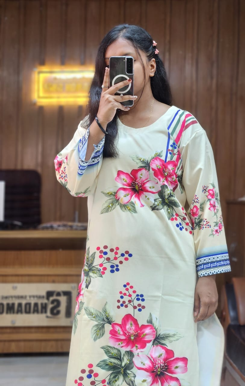 কলকা সুতি টু-পিস সেট স্ক্রিন প্রিন্টেড গাউন এবং পায়জামা