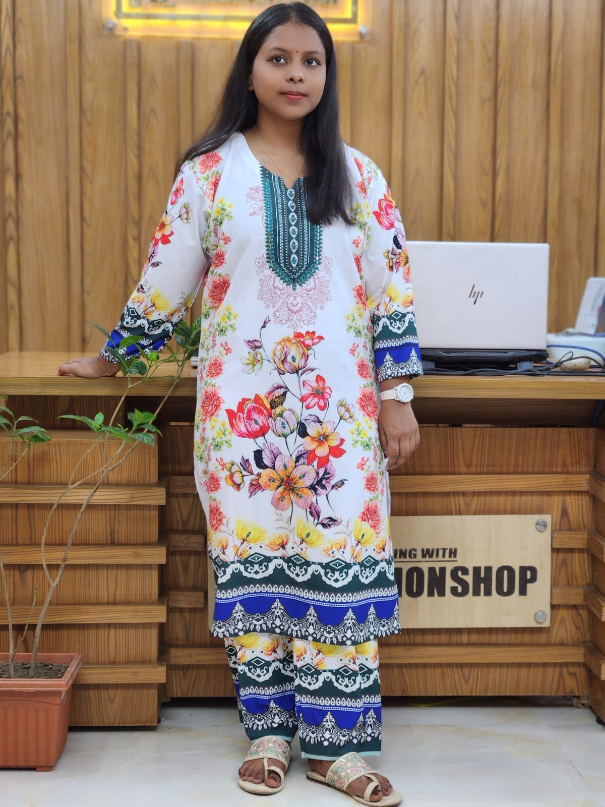 đē Cheerful pink floral co-ords, stitched premium fabric with ethnic border detailing