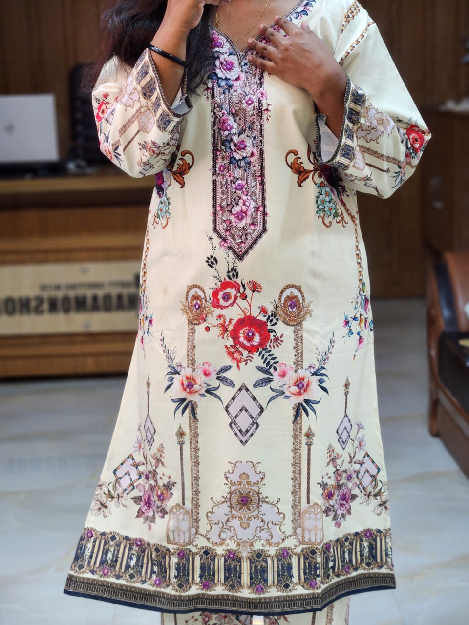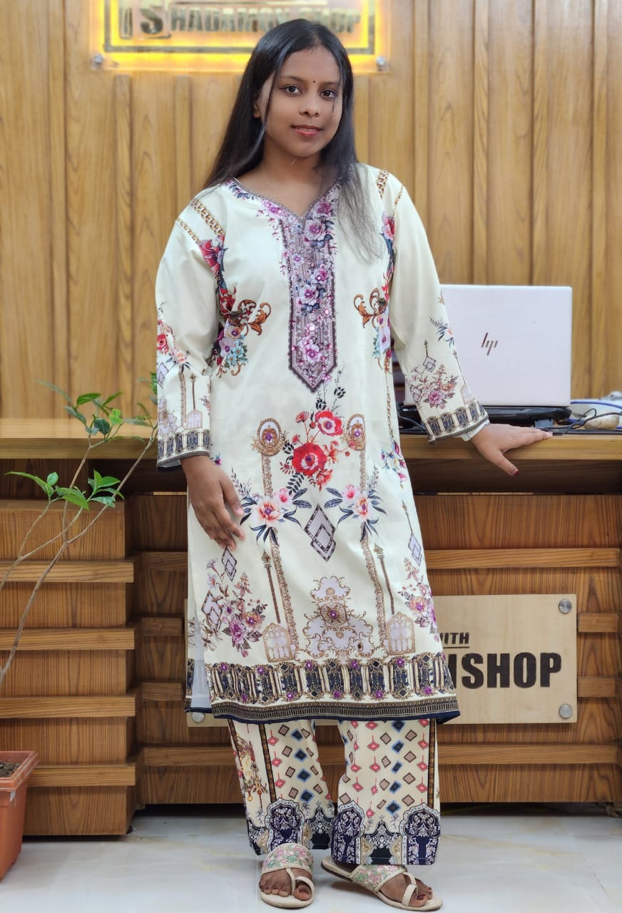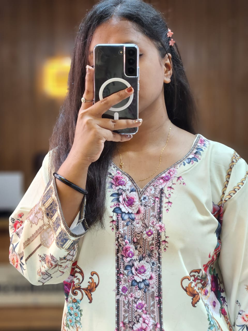 👑 Cream base stitched co-ords with royal embroidery-inspired mirror detailing