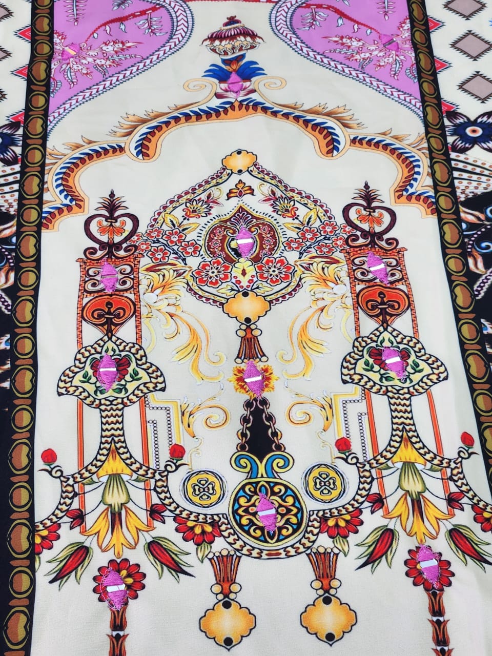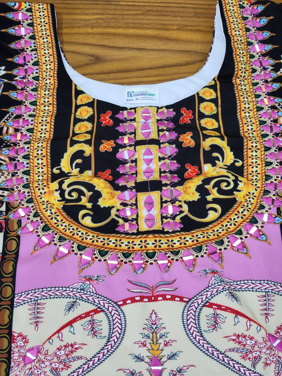 ✨ Premium stitched co-ords in cream–black, pink contrast with hand mirror work